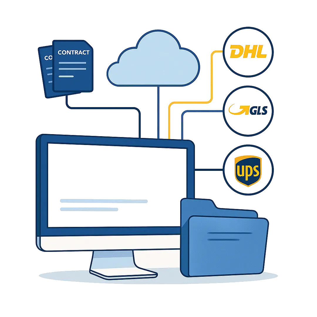 Integrate shipping providers like DHL, DPD, UPS, GLS, and more. Choose what fits your workflow – set up once, ready to go permanently.
